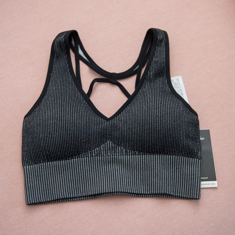 Break code clear~Comfortable sports bra Yoga underwear Medium high support shockproof fitness beauty back pink black running bra