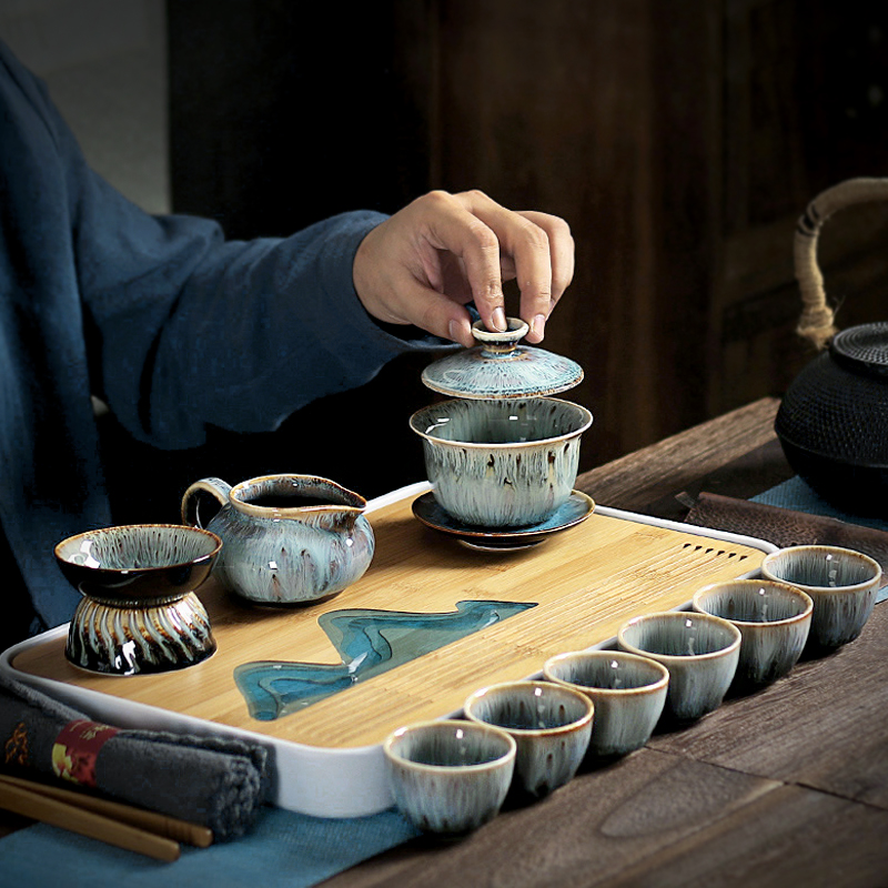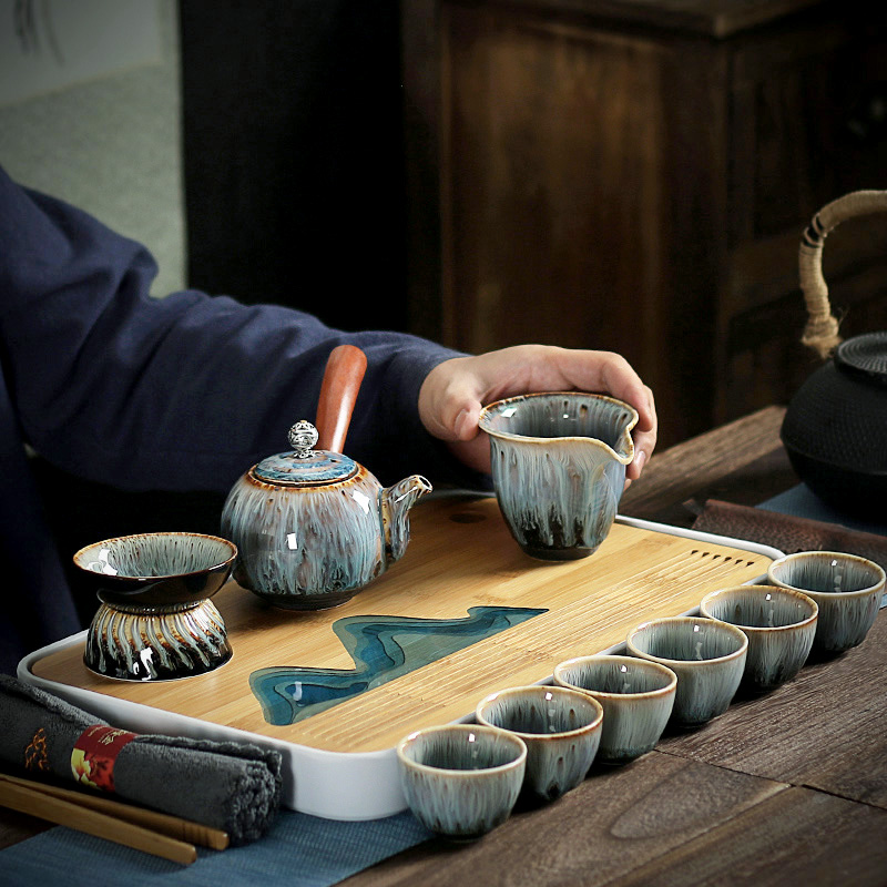 Hege kiln changed to build a tea set set home complete set of Tianmu glazed teapot kung fu tea cup tea cup tea maker