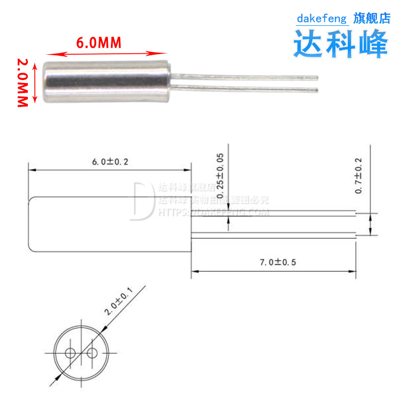 206 308 cylindrical crystal oscillator 2*6 3*8 32 768K 32 768KHZ 6 9 12 5PF 8MHZ