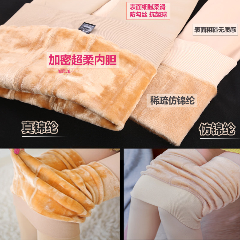 Love tide foot flesh color underwear women autumn and winter wear plus velvet thick light leg one pants warm skin color pants socks