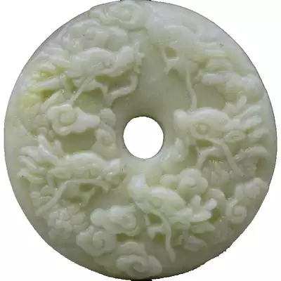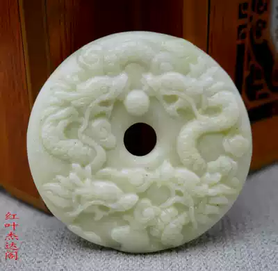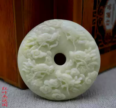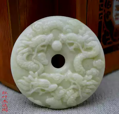 Natural Lantian jade Kowloon round wall pendant Round dragon brand stone pendant Car pendant Waist wear Ancient style tassel dragon jade pendant