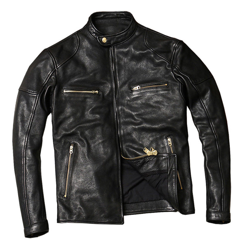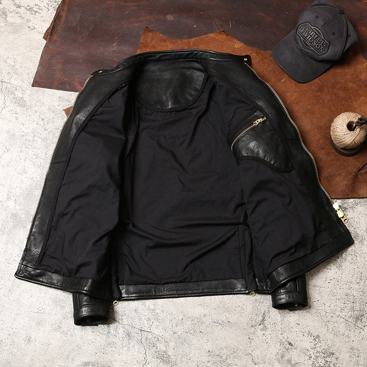 Day-series retro-collar locomotive leather jacket for men washed with tannins thickened sheep leather Short-to-fit leather jacket