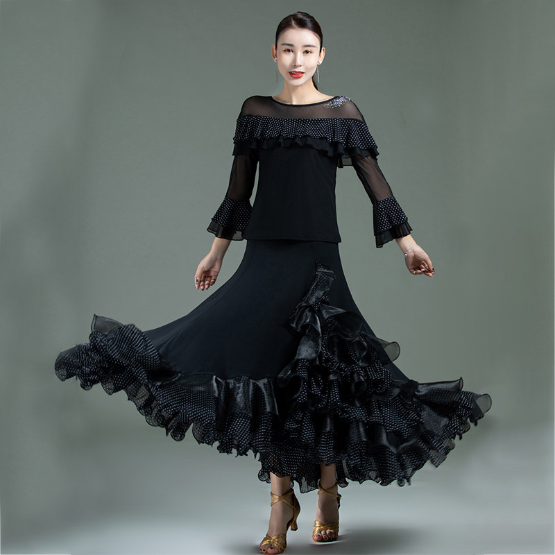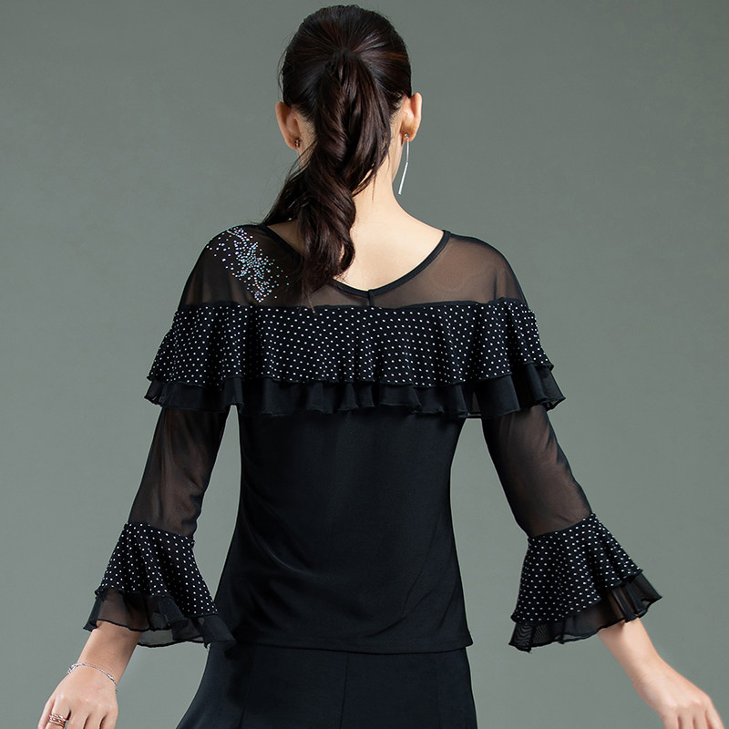Modern dance dress top New polka dot fashion flared sleeve adult female standard Latin three-step square dance suit