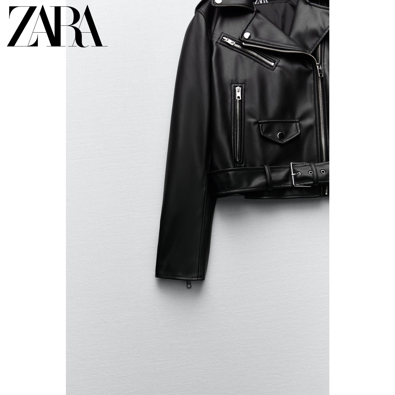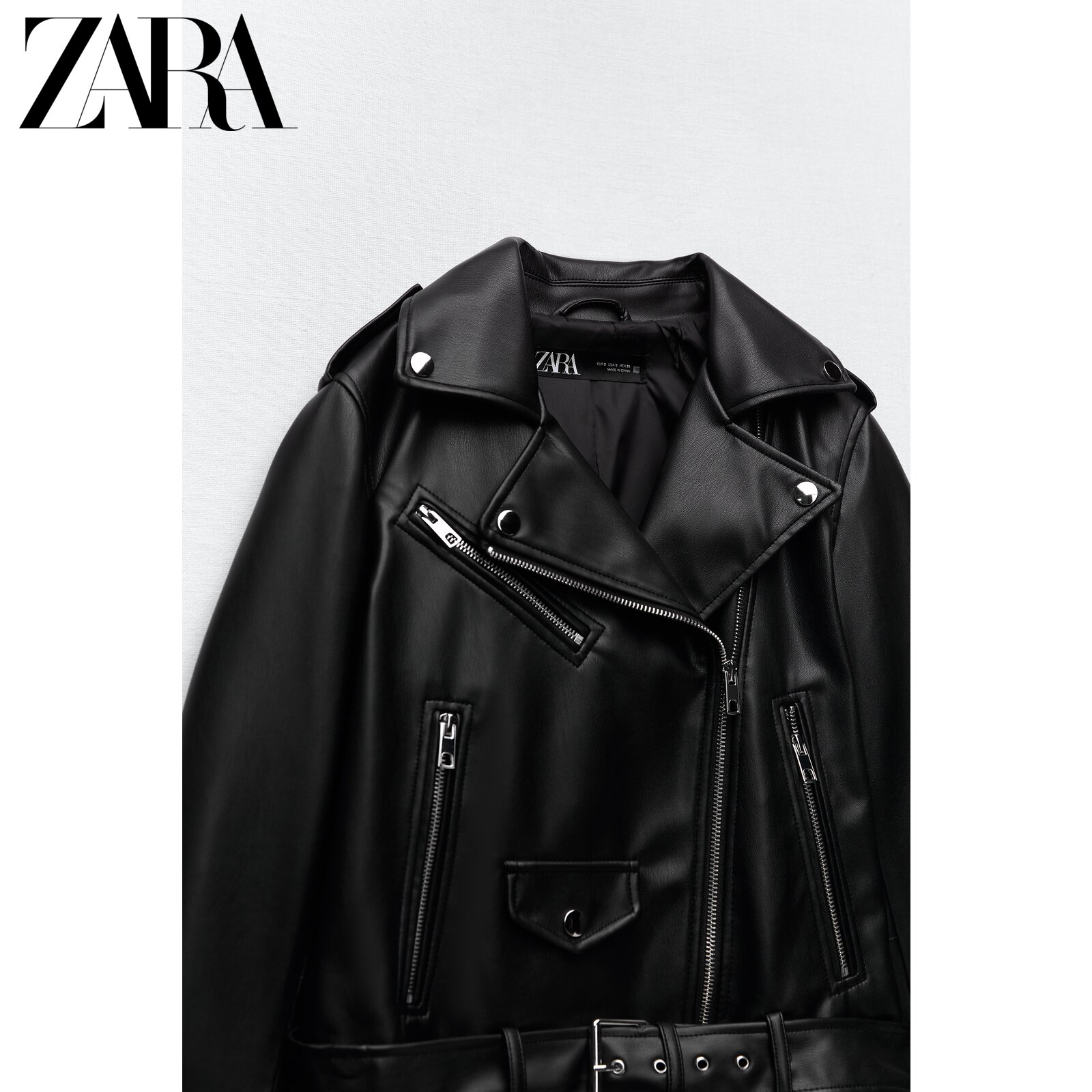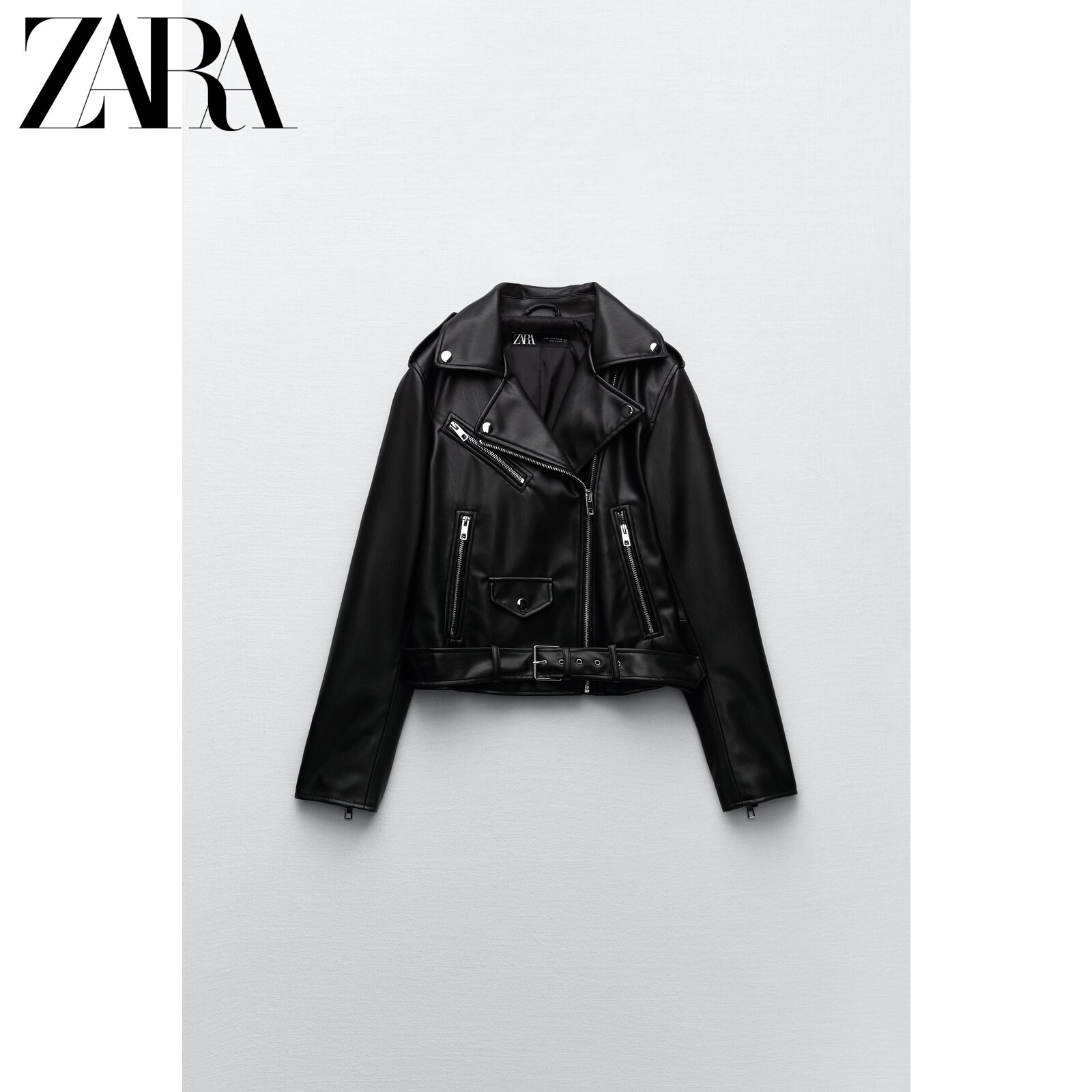 ZARA new women's dress black imitation leather jacket jacket 3046028800