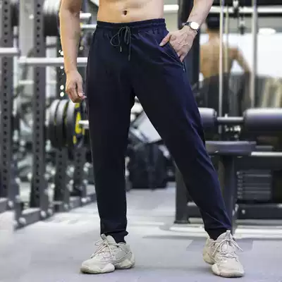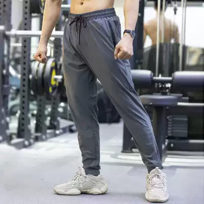 Thin ice silk sports pants Men's loose quick-drying breathable nine-point pants Running training slim-fit pants fitness pants