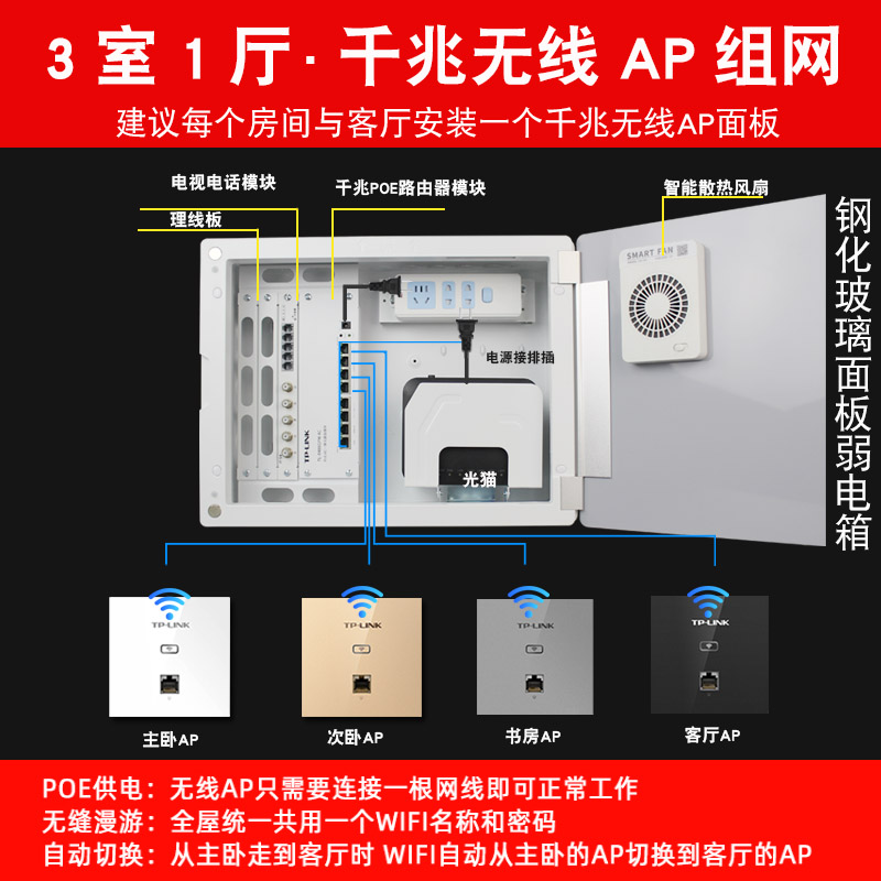 Weak Electrical Box Basic Kit (excluding routing and AP) 1 Bedroom 1 Hall Box 488 + WiFi6 Panel 2 18002 Room 2 Hall Box 488 + WiFi6 Panel 3 18003 Room 2 Hall Box 488 + WiFi6 Panel 4 18004 Room 2 Hall Box 498 + WiFi6 Panel 5 18005 Room 2 Hall Box 499 + WiFi6 Panel 6 1800 Villa Box 499 + WiFi6 Panel 7 18001 Room 1 Hall Box 488+ wifi6 panel 2 30002 room 2 hall box 488 + wifi6 panel 3 30003 room 2 hall set box 488 + wifi6 panel 4 30004 room 2 hall set box 498 + wifi6 panel 5 30005 room 2 hall set box 499 + wifi6 panel 6 3000 villa set box 499 + wifi6 panel 7 3000 default hair Hao moon white need other colors please note Gigabit router set (without wireless AP)