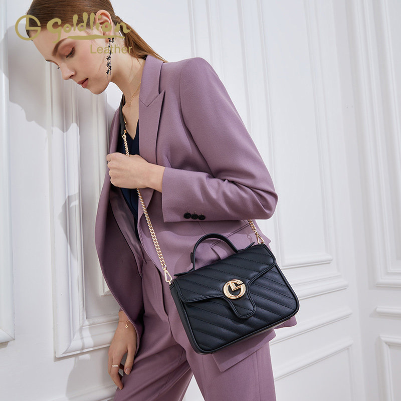 Goldlion women's bag 2022 new simple fashion small square bag messenger bag women's light luxury small fragrance style women's bag