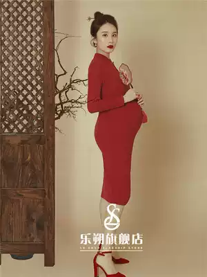 Pregnant women's photo clothing red knitted cheongsam dress pregnant women photography clothing photo studio pregnant women Photo Clothing