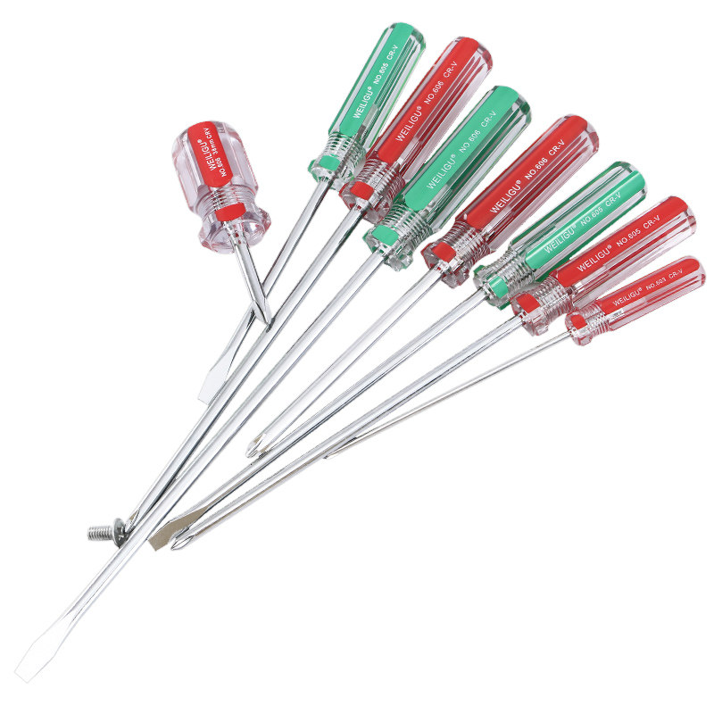 Crystal handle straight head cross screwdriver screw driver flat opening colour Bar handle screw driver with magnetic lengthened rod 38-300mm