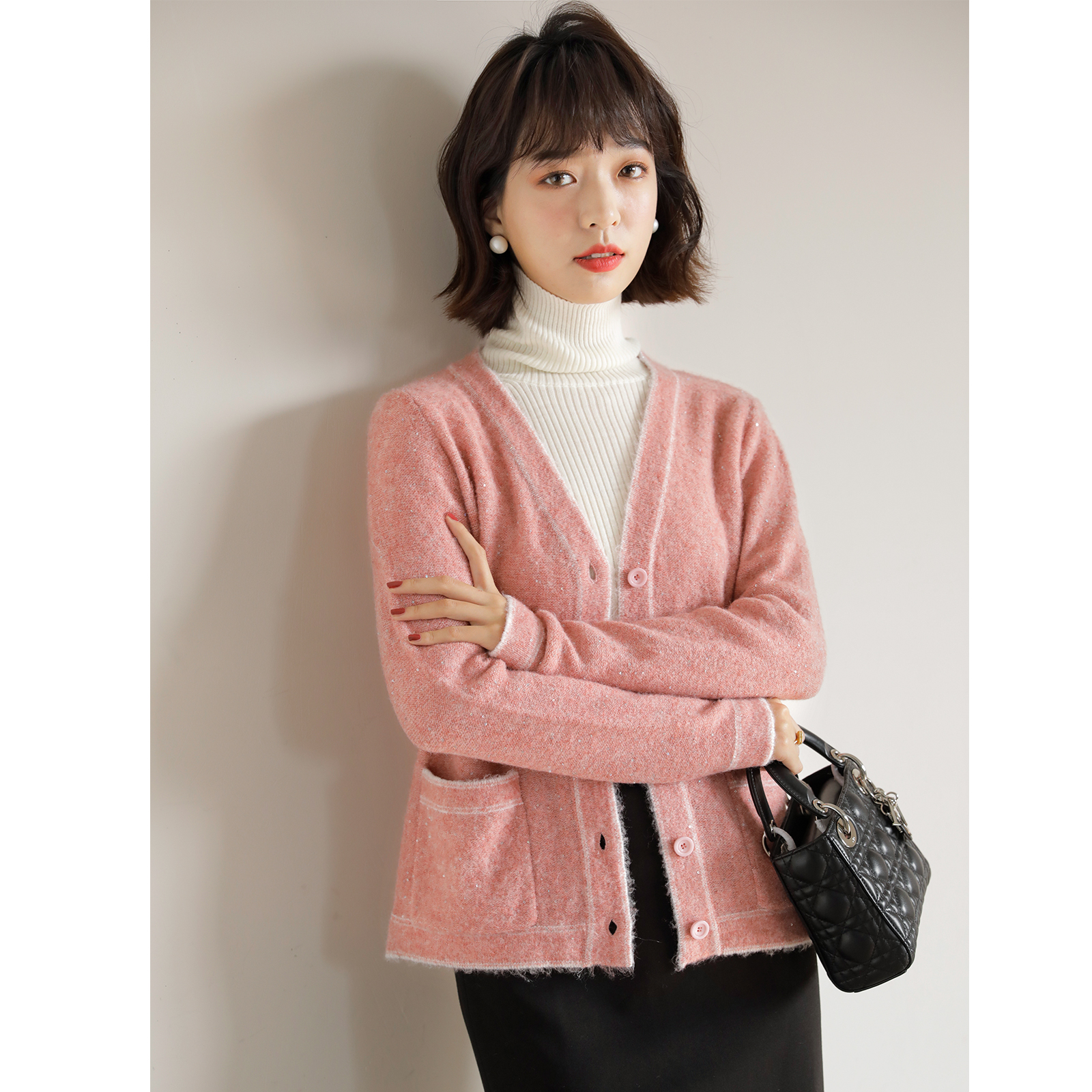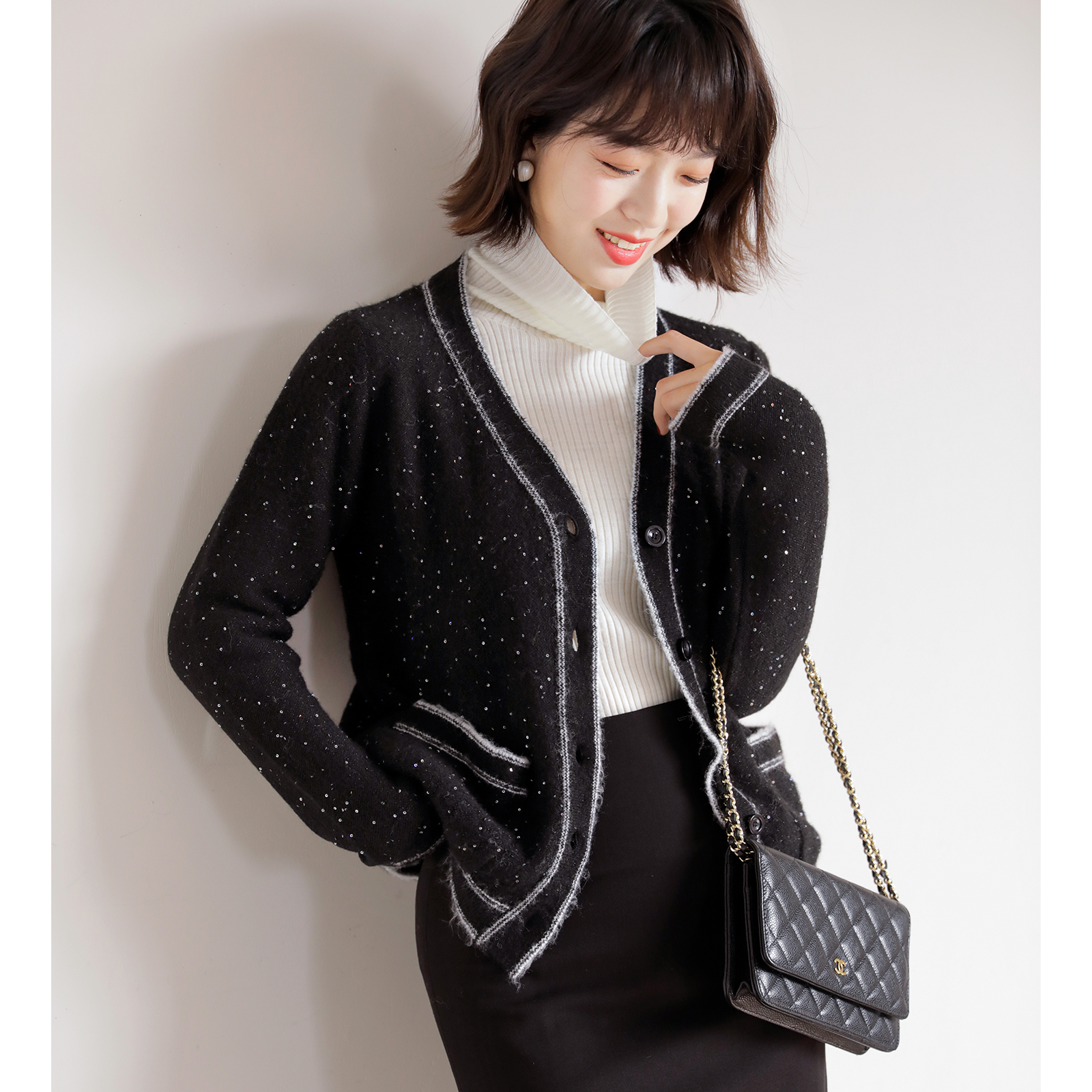 Exquisite and elegant dazzling feeling, romantic scattered all over the body ~ sequins embellished single-breasted cardigan knitted sweater women
