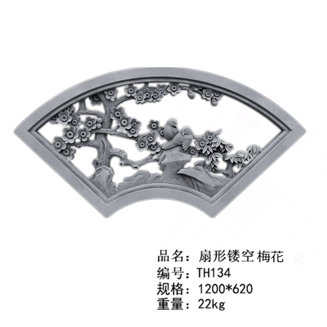 Antique brick carving Ancient fan-shaped hollow brick carving Fan-shaped hollow plum orchid bamboo and chrysanthemum brick carving