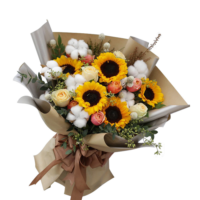 5 Sunflowers 9 Roses Korean Bouquet 9 Roses 4 Sunflowers Bouquet 11 Roses Red Kang Ping Ping Chrysanthemum Mix and match 11 Golden Hui 3 Sunflowers Mix and match 11 Yellow Roses Mix and match 3 Roses