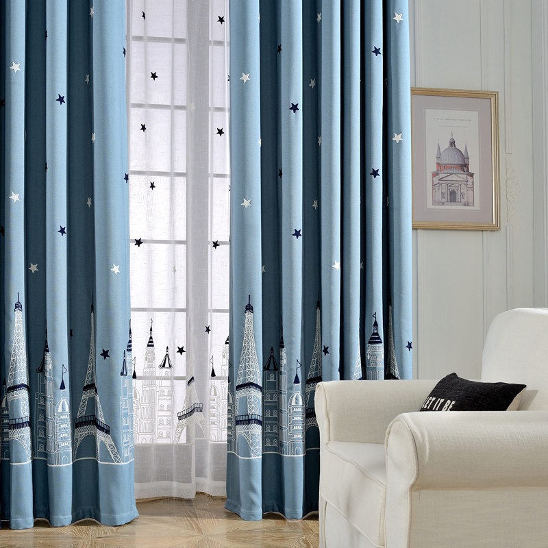 Nordic simple modern curtain finished Korean living room bedroom thickening children's room castle cute cartoon curtain cloth