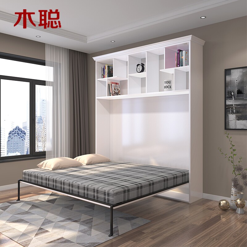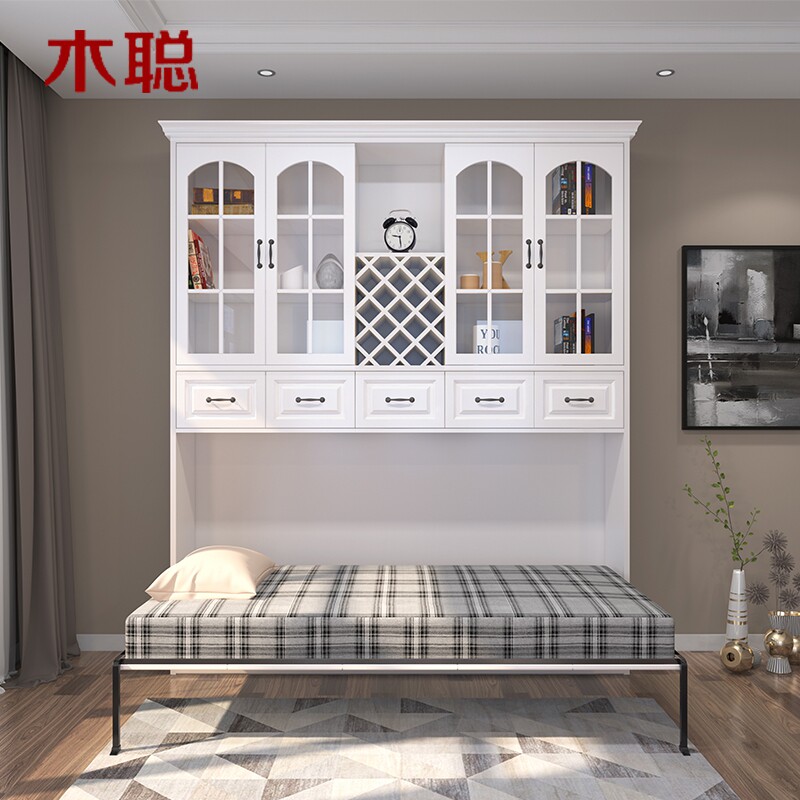 Side Turning Bed Wall Bed Invisible Bed Multifunction Integrated Cabinet Economy Type Bookcase Wine Cabinet Wine Cabinet Wardrobe cabinet Solid wood Customized