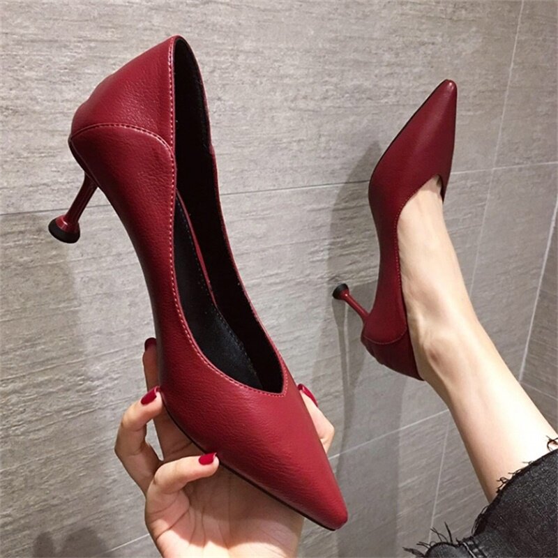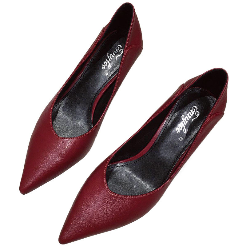 Black High heel Shoe Girls fine heel 2022 New spring autumn 100 hitch Shallow Mouth Soft Leather Custard Pro Heel Bag Shoes Woman