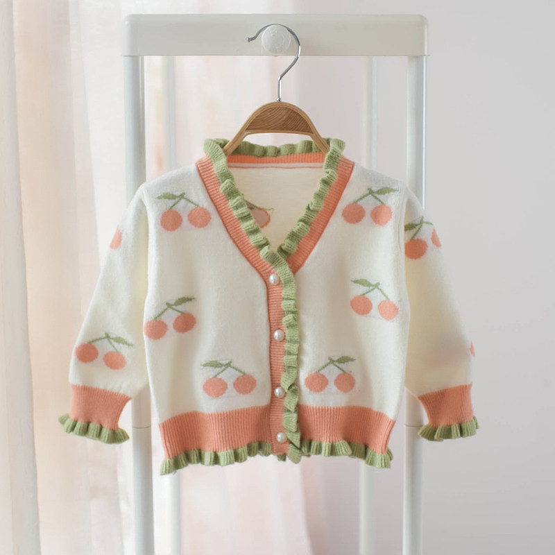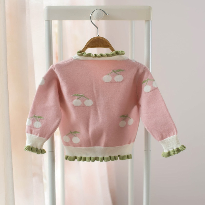 Spring and autumn New products Han version female children sweaters Sweater Women Bao Cherry Knit Cardiovert Open Button V collar round collar jacket jacket