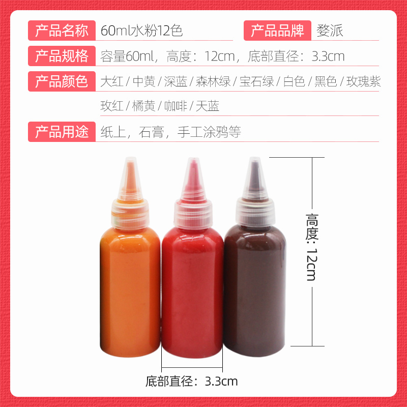 Children's kindergarten washable watercolor water pink hand finger painting paint 60ML12 color suit safe and eco-friendly painted