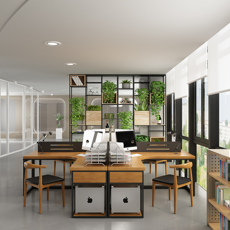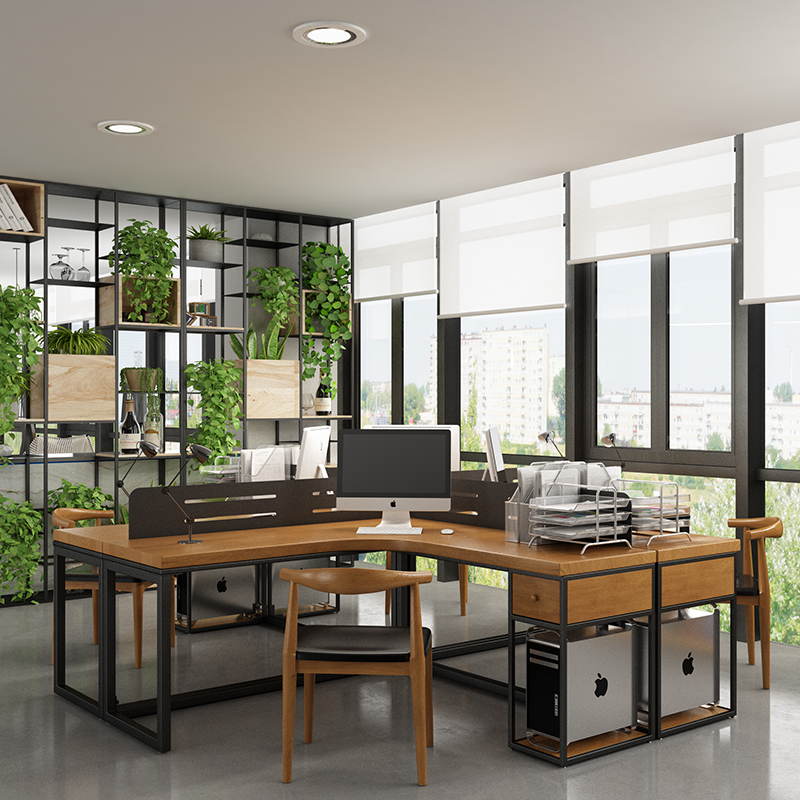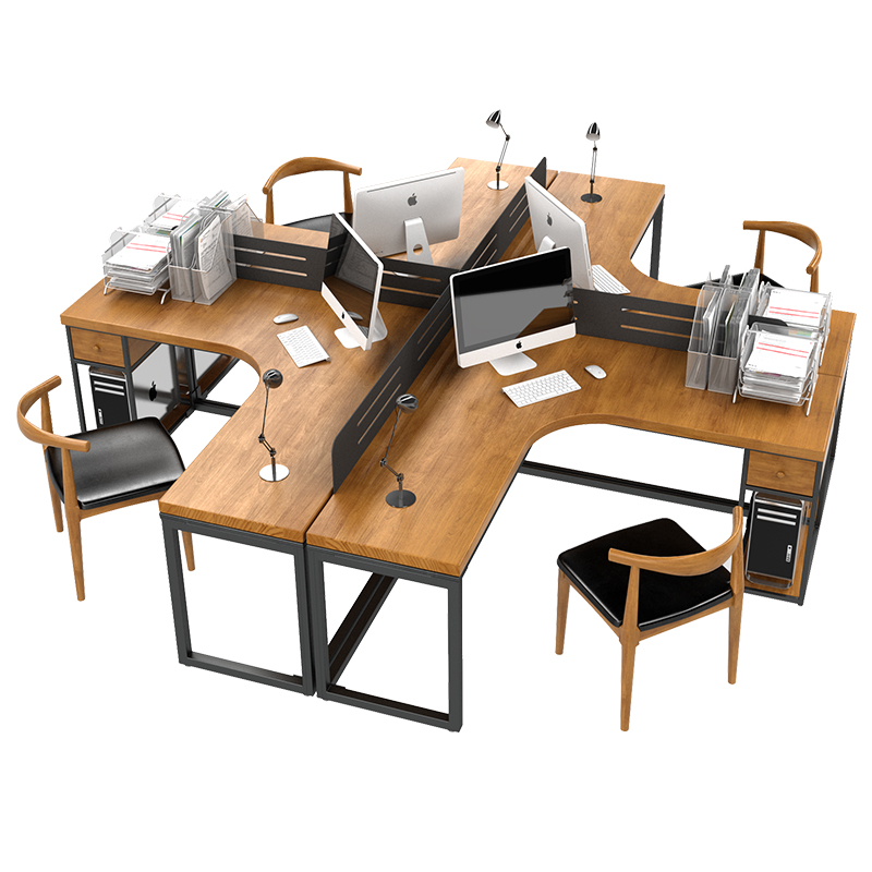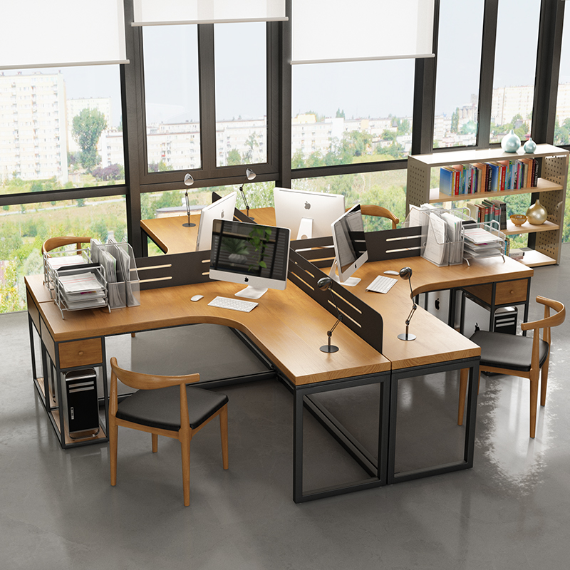 Office solid wood desktop office computer desk L-shaped double corner desk L-shaped four-person corner workbench