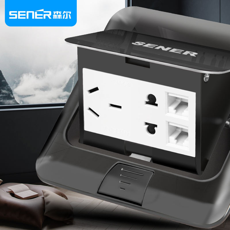 Senl Damping Stainless Steel Black Ground Plug All Copper Waterproof Five Holes Telephone Computer Ground Socket Telephone Network Road Network Route
