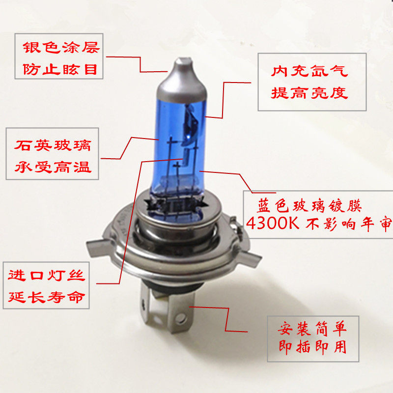 Car motorcycle H4 headlight bulb Xunying three claws 60W far and near halogen headlamp yellow and white xenon lamp