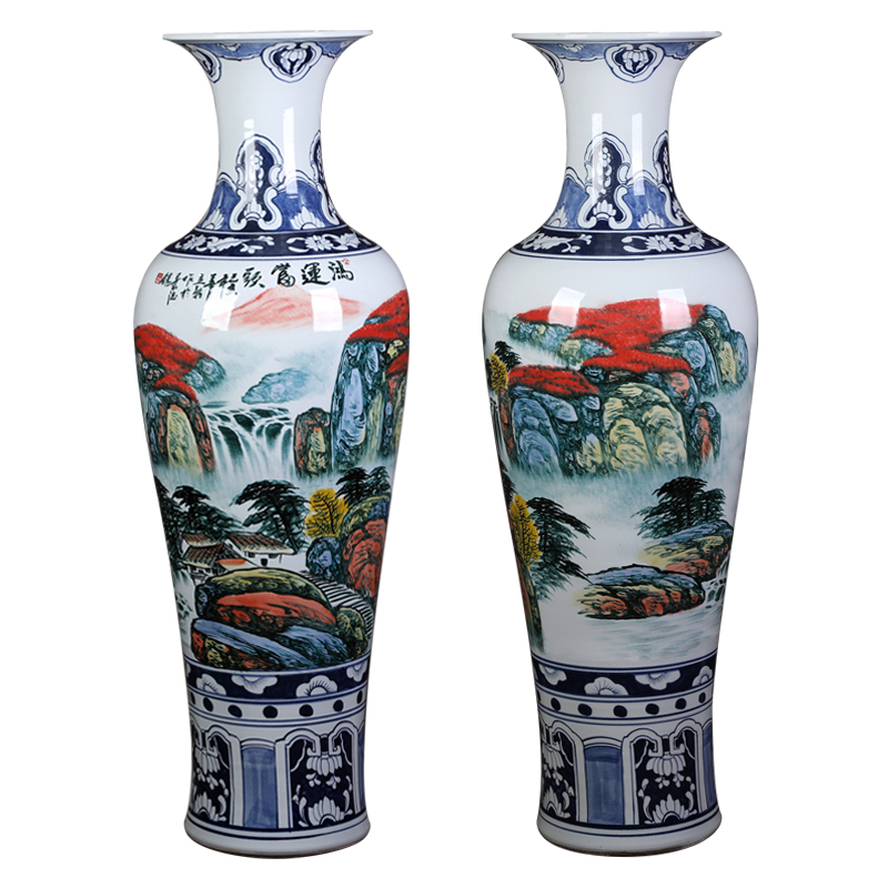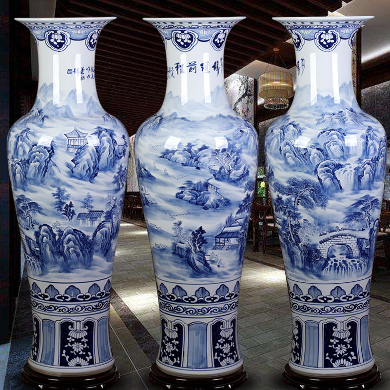 Special price Jingdezhen ceramic large vase hand-painted blue and white landscape new house housewarming living room hotel decoration floor ornaments