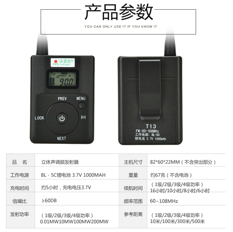 FM MP3 Transmitter HRD-831 Stereo FM Car Wireless Teaching Square Dance Audio Transmitter T13