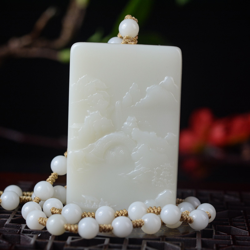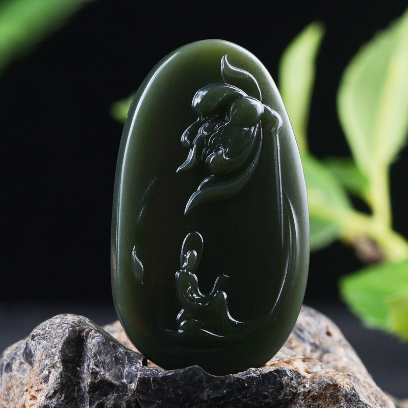 Jiugong Jewelry Natural Xinjiang Hetian Jade Seed Material Carving Pendant White Jade Ink Jade Violet Jasper Blue Oil Material