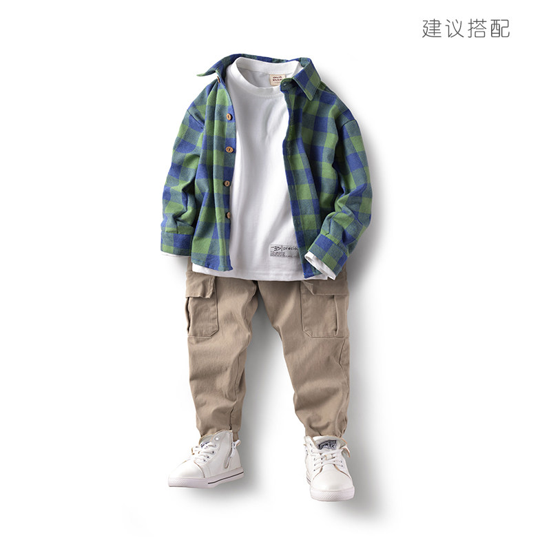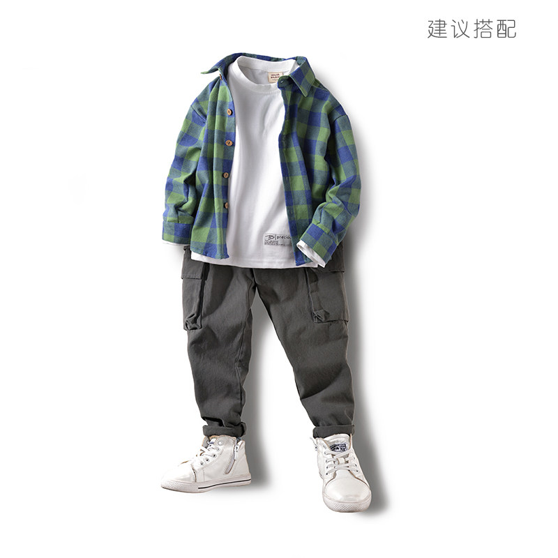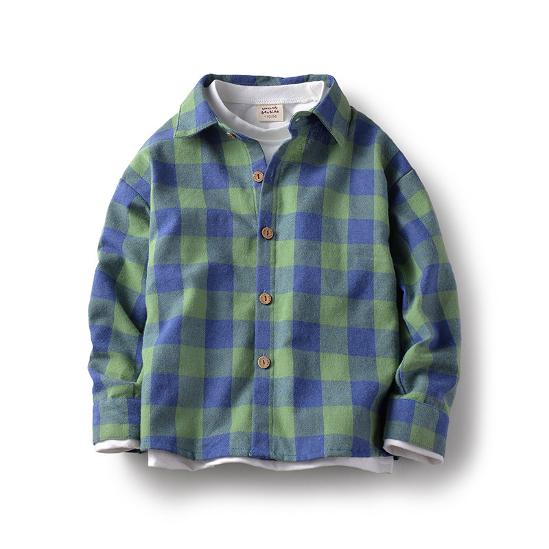 Bambina Kids Fall 2021 New Boys Shirt Long Sleeve Cotton Mid Kids Plaid Shirt Kids Top