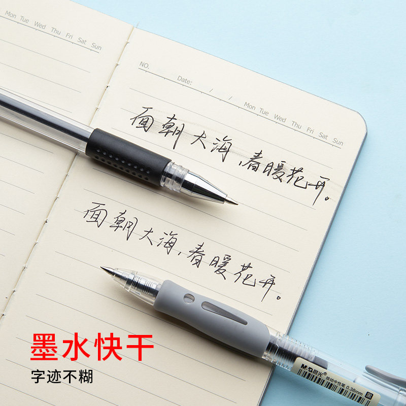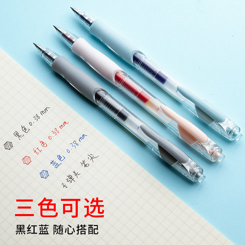 Morning light press gel pen 0 38mm small fresh black water pen Student blue signature pen Red red pen Bullet smooth continuous ink Simple pressing water-based pen Carbon pen Office