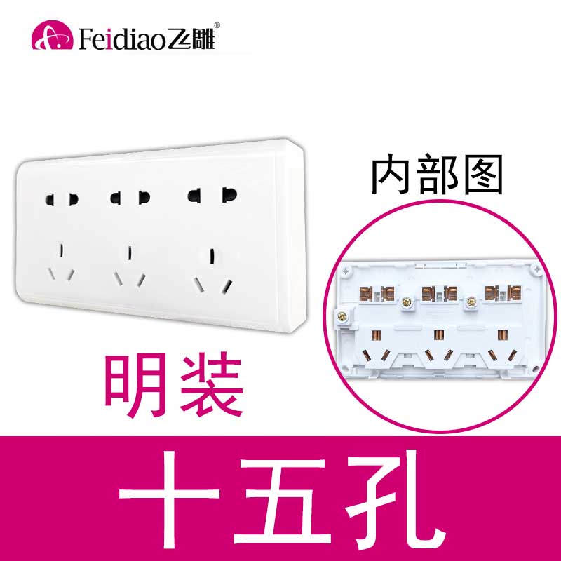 Fei sculpture with 15 hole socket two or three - hole panel household wall brightline box with five - hole three - plug porous power supply