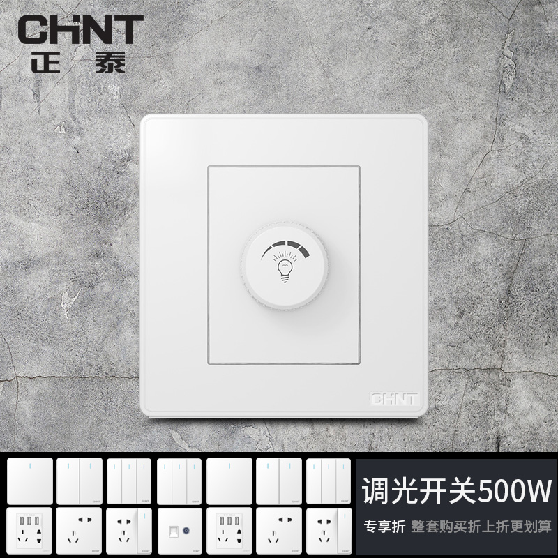CHINT type 86 switch stepless dimming incandescent lamp dimming switch 500W rotating brightness switch panel