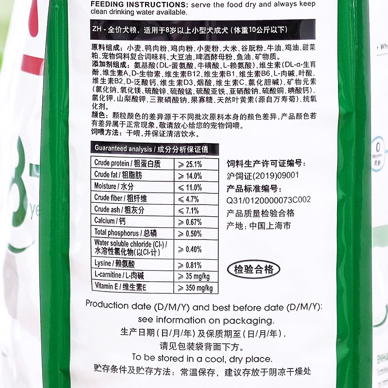 (small dog) aged dog food by 2kg