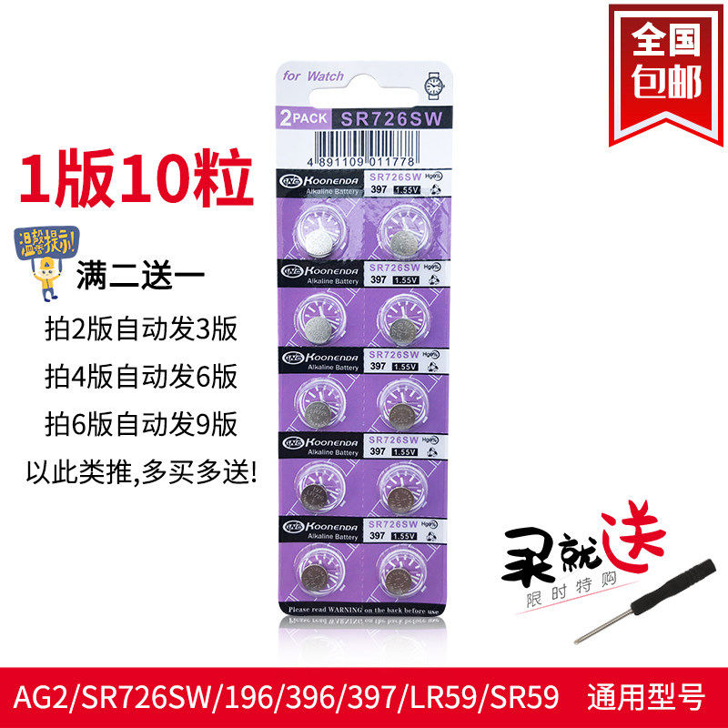 AG2 WATCH BATTERY 397 ORIGINAL SR726SW Universal 196 Model LR726 button SMALL ELECTRONICS 396 SR59