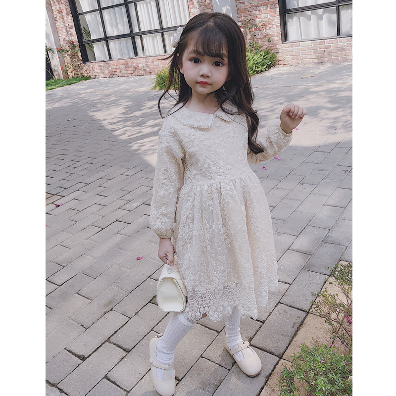 Girls doll collar long-sleeved dress spring and autumn foreign style little girl princess skirt 2022 autumn new children's skirt