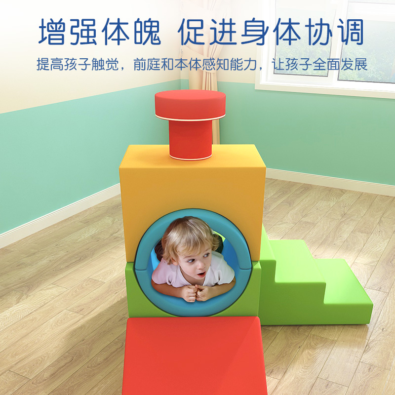 Kindergarten Early Education Center Hall Toy Soft Train Head Combined Children's Soft Pack Slide Sensing Unified Training Equipment