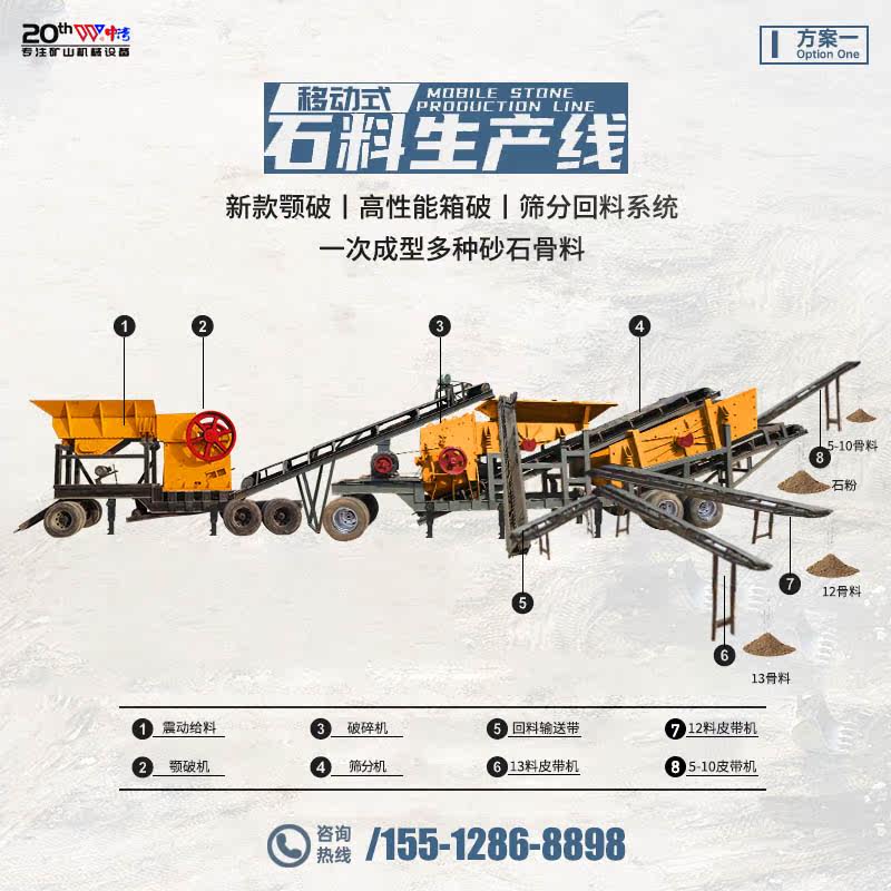 Large mobile crusher crushed stone machine screening machine construction garbage weathering stone green stone cobblestone subproduction line