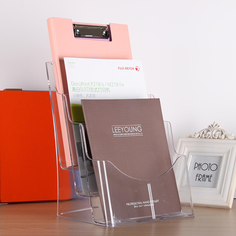 A4 Acrylic Exhibition Shelf Triple material Shelf Brochure Color Page Single Page Desktop Flyer Front Desk Catalogue Shelf Set Up For A5 Hanging Wall File Containing Information Box a6 Multilayer Book Press Shelf Customized