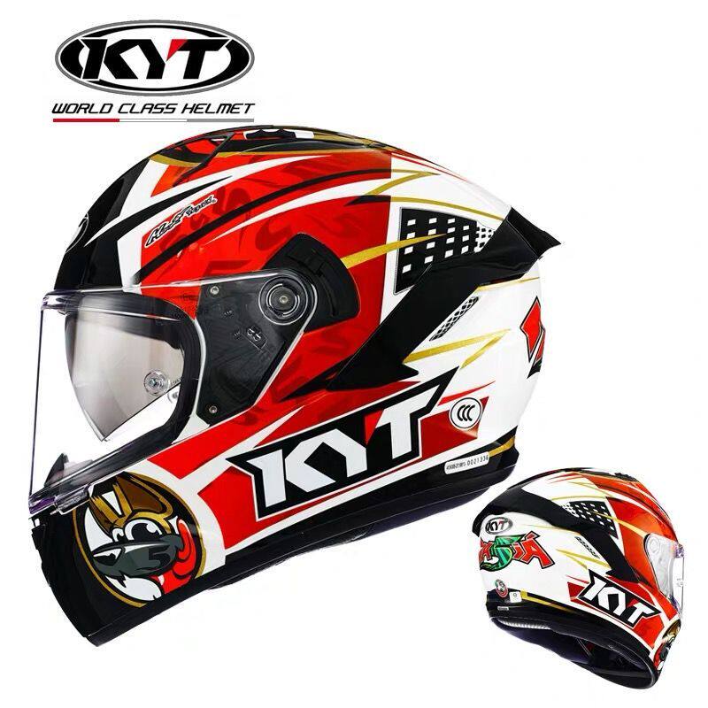 KYT Motorcycle Helmet Summer Men's and Women's Full Helmet Anti-Fog Dual Lens Motorcycle Full Cover Four Seasons Running Helmet Racing
