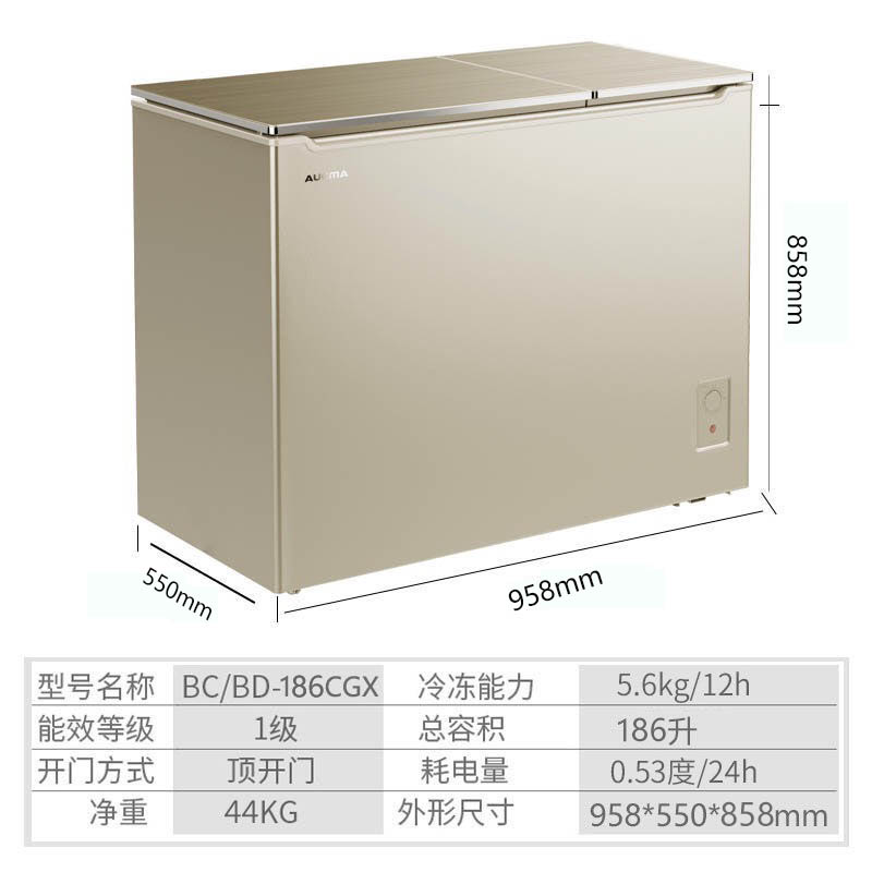 Aucma Australia Corma Ice cabinet BCD-186CGX Home Double warm Ice Freezer Brass Double Door Frozen freezer
