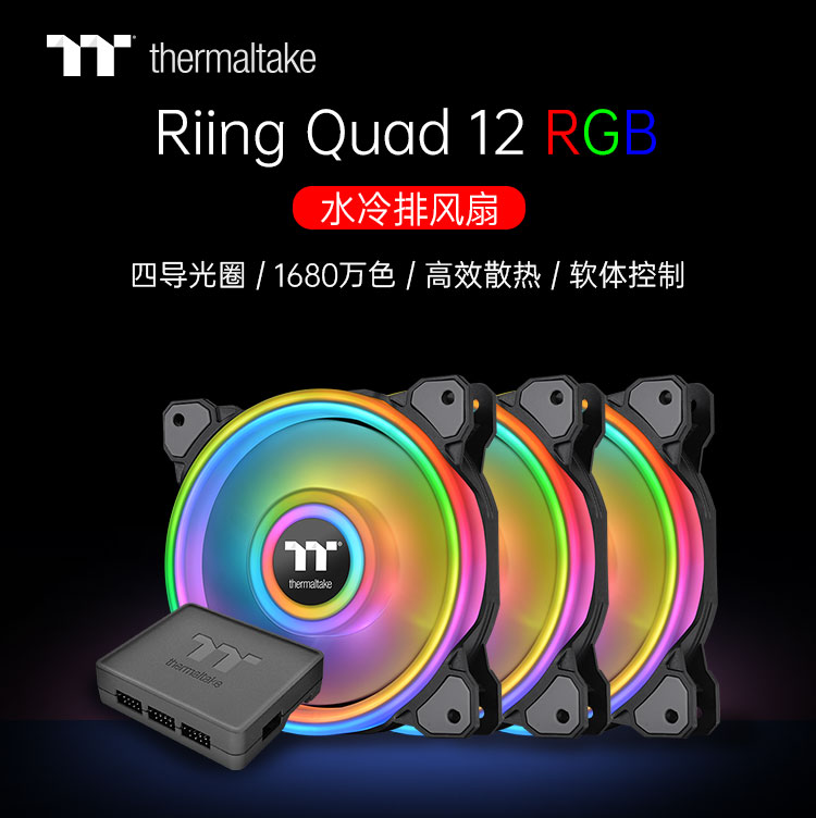 Tt host shell fan Riing Quad 12 14cm RGB colour changing lamp mute heat dissipation LED water cooled exhaust fan