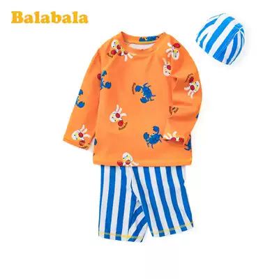 Balabala children's swimsuit boy set baby boy two-piece swimsuit swimming cap swimming trunks cartoon print