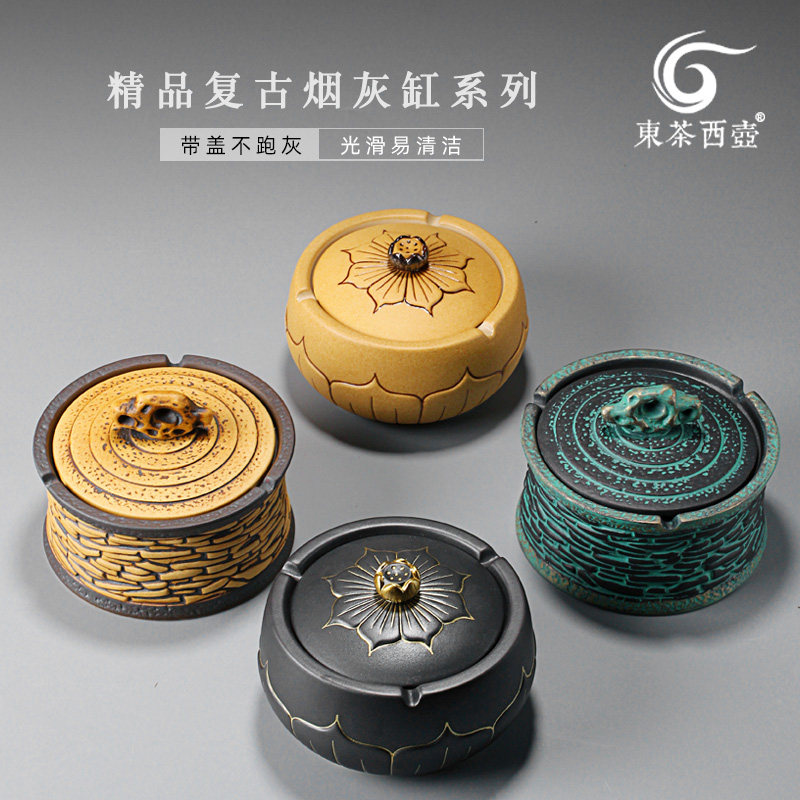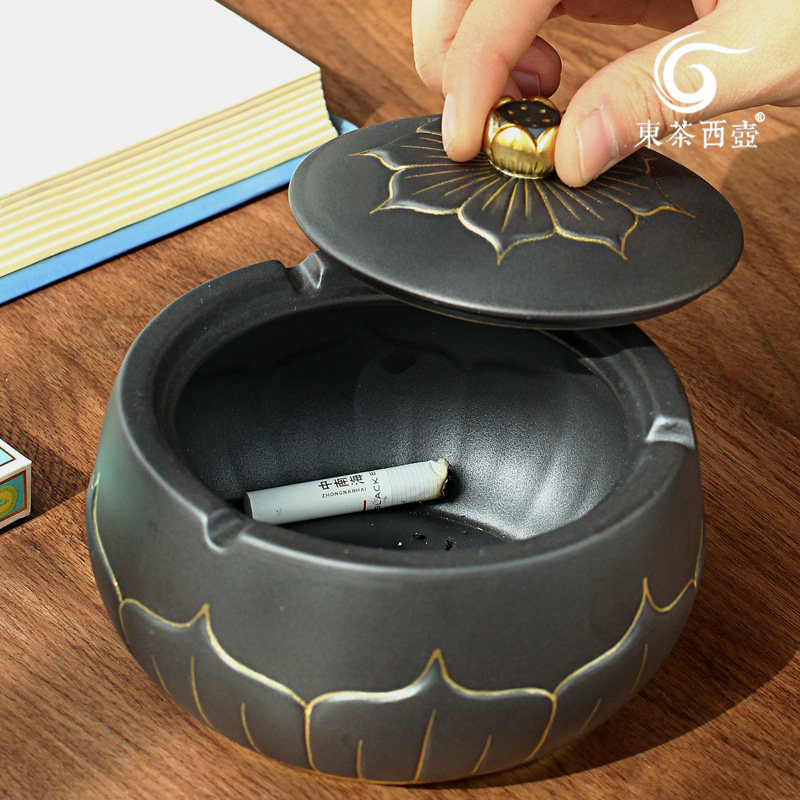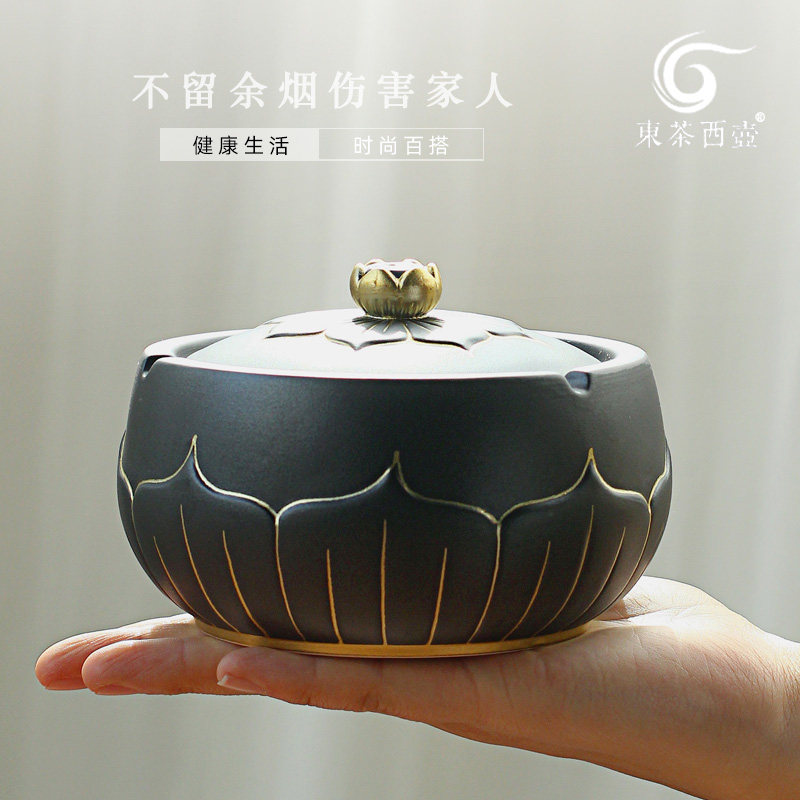 East tea and west pot creative personality large ceramic ashtray with cover anti-fly ash home living room ashtray luxury trend