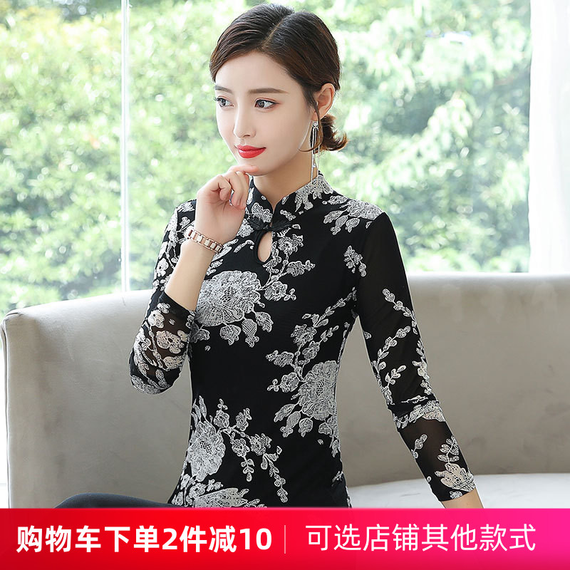 Autumn national standard modern social dance national style women's top Latin dance long sleeve retro Chinese square dance dress