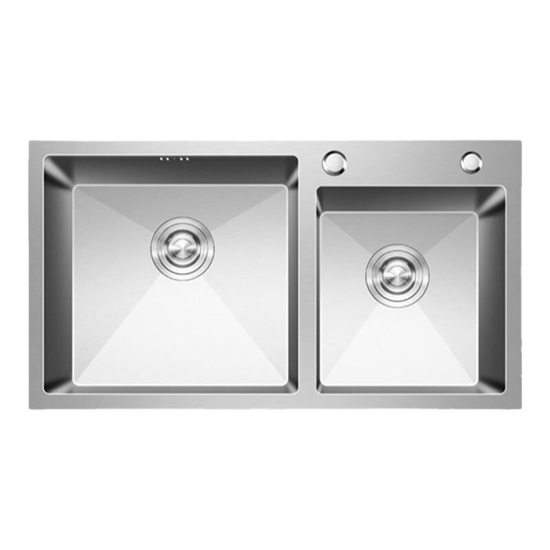 Cherry Lush Kitchen Water Basin SUS304 Stainless Steel Sink Floor Wash Basin Handcrafted Double Groove Washbasin Wire Drawing Thickened Small Double Sink