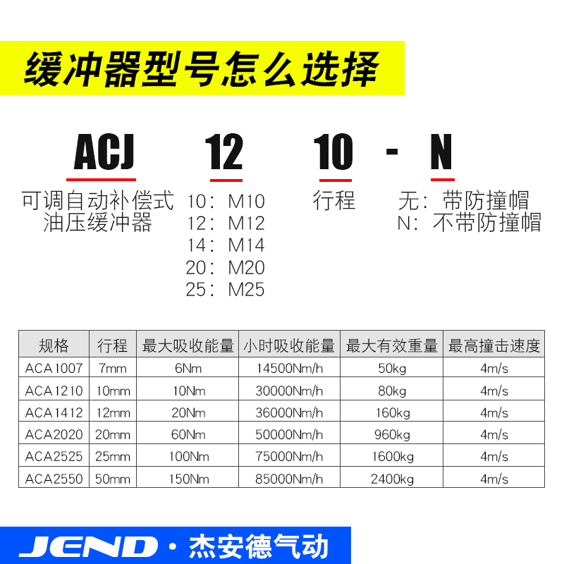 Cylinder hydraulic damping adjustable oil pressure buffer ACJ1007 ACJ1210 1412 2020 2525-N