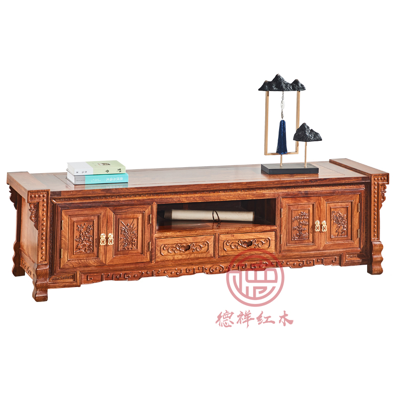 Red Wood Furniture Boyhood Flowers Pear Wood Tinged Hedgehog Purple Sandalwood Luxury Seasonal Flowers TV Cabinet Solid Wood Chinese Placement Cabinet
