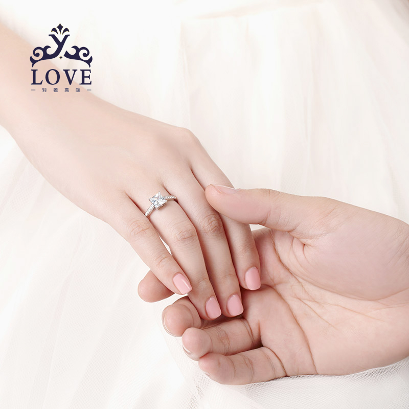 Princess Square Diamond Ring Mosanstone Drill Group Insert Wedding Ring Emulation Diamond 18kpt950 Platinum Female Send