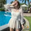White fairy fan swimsuit female large size fat mm long-sleeved body cover belly thin black sexy 2021 new hot spring