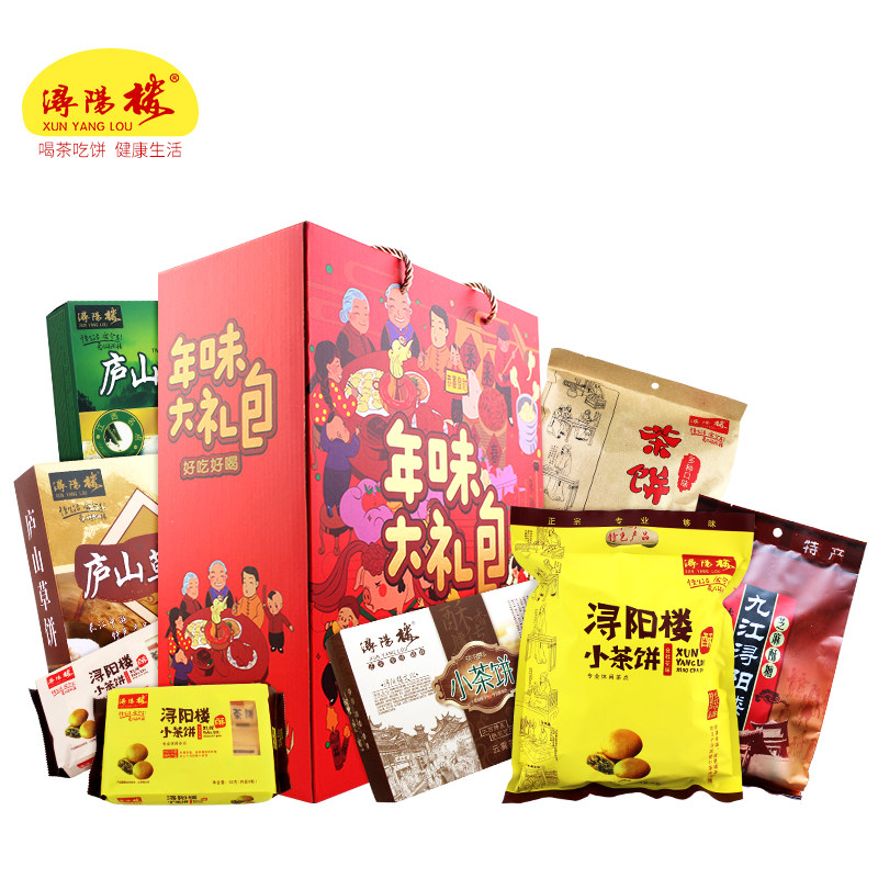 Jiujiang Tea Cake Gift Box Xunyang Building Tea Point Jiangxi Ties Crisp Sugar Gift Tea Spot Year Goods Delivery Gifts of Snack Big Gift Bag