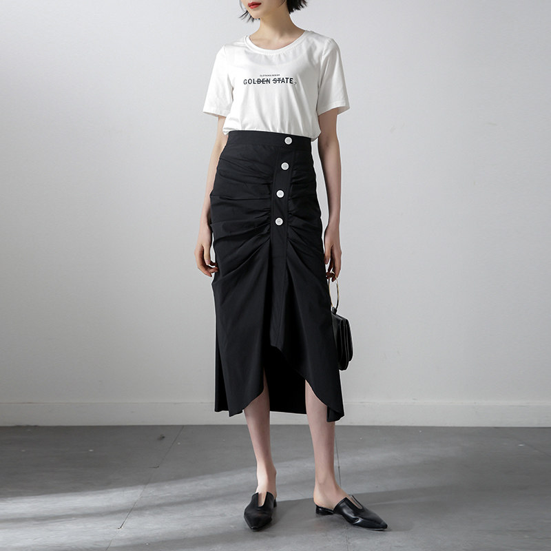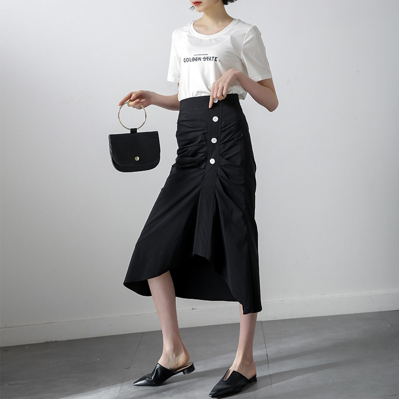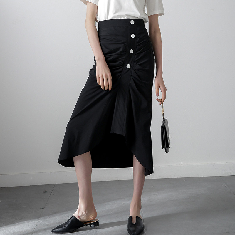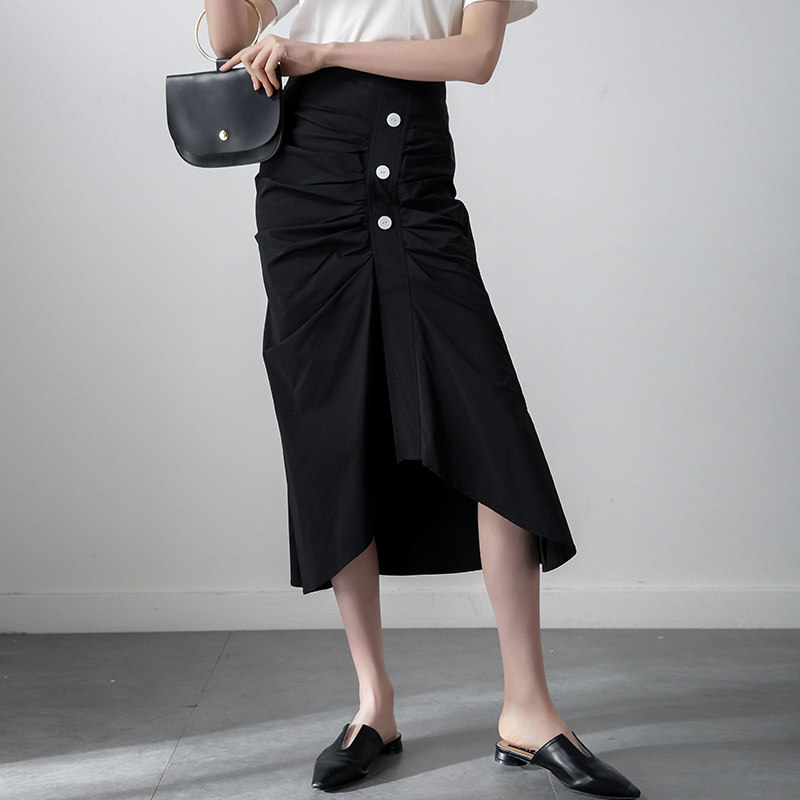 Black High Waist Half Body Dress Woman 2022 Spring new Korean version Temperament Folds Irregular Medium Long Version Skirt Women's Dress